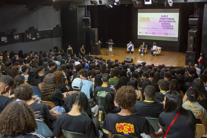 Olhos atentos e curiosos em um clima de descoberta de possibilidades para o futuro. Cerca de 300 alunos de escolas públicas do Gama e de Taguatinga lotaram o anfiteatro 9, no campus Darcy Ribeiro, na manhã desta quarta-feira (5), para participar da Prosa com a Reitora, atividade da Semana Universitária de 2025 (Semuni25) voltada para o diálogo direto com a gestão. A maioria dos estudantes deixou evidente o interesse em ingressar na Universidade de Brasília.