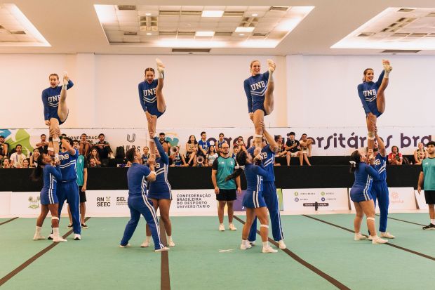 “O cheerleading marcou profundamente minha trajetória na UnB. Conheci o esporte aqui e, desde então, ele se tornou parte essencial da minha vida”, afirma a estudante, que é vice-presidente do clube da modalidade na instituição. Ela celebra a recompensa dos treinos intensos, liderados pelo técnico Matheus Satori, egresso da Faculdade de Educação Física. “Treinávamos todos os domingos e em alguns sábados à noite, pois essa era a forma de conciliar o esporte com nossos compromissos de faculdade e de trabalho”, lembra, ao agradecer o apoio institucional e classificar como “extremamente gratificante” a oportunidade de representar a UnB nos jogos.