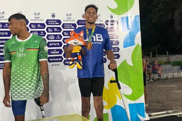 O sentimento é parecido com o do três vezes medalhista de bronze da natação paradesportiva João Pedro Sales. “Foi muito importante representar a UnB, especialmente porque foi no Centro Olímpico (CO) que recomecei minha trajetória como atleta. Levar o nome da instituição em uma competição nacional é muito especial para mim”, diz o estudante de Educação Física. Diagnosticado há oito ano com a síndrome de Guillain-Barré, que afeta os sistemas imunológico e nervoso, ele tem a movimentação das mãos e pernas comprometidas.