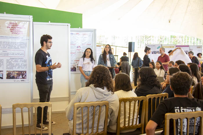 No primeiro dia de atividades da 25ª Semana Universitária, o Centro Comunitário Athos Bulcão sediou o VII Encontro de Extensionistas da UnB. O momento foi uma oportunidade para professores, técnicos e estudantes de graduação e pós-graduação falarem sobre dezenas de projetos de extensão desenvolvidos na Universidade e compartilharem experiências. Além da apresentação de trabalhos e banners, rodas de conversa, mesas expositivas, música e dança movimentaram a tarde desta segunda-feira (3).