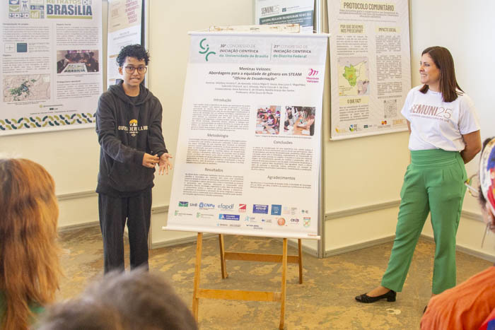 A estudante Sofia Mieto, 19 anos, está no 4º semestre do curso de licenciatura em Biologia e destacou a importância das atividades de extensão. Há um ano, ela integra o projeto Conexão Científica com a proposta de aproximar estudantes do ensino médio do mundo da ciência. Além de atividades práticas nas escolas, são realizadas visitas à UnB. “Principalmente para eles verem como a ciência é feita na Universidade e quem são os cientistas, para que eles conheçam diferentes cientistas”, destacou.