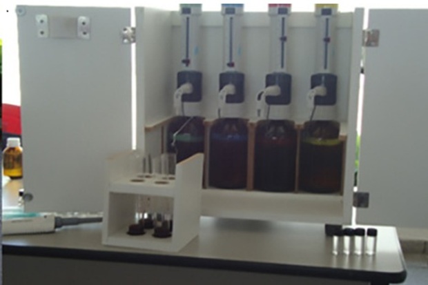 Suarez explica que o uso do kit se assemelha à aplicação de testes para avaliar a concentração de cloro em piscinas ou de análise do pH em aquários. “Ele é um teste colorimétrico. Pingamos alguns reagentes na amostra, aguardamos alguns minutos e observamos. Se a cor for alterada, existe a presença do metanol”, diz o docente, que é ex-diretor do Centro de Apoio ao Desenvolvimento Tecnológico (CDT) da Universidade de Brasília. O professor pondera que o teste não detecta o percentual de metanol na amostra, mas que a coloração se torna mais intensa quando há maior concentração desse solvente tóxico.