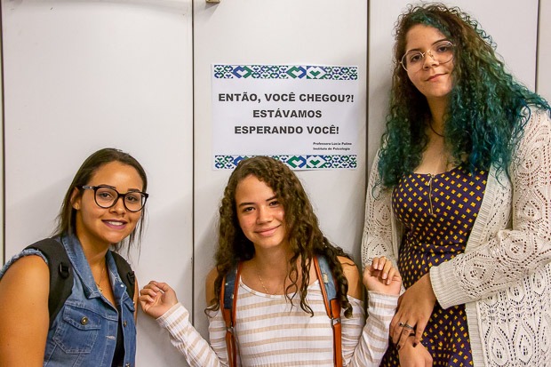 A jovem veio acompanhada das calouras e novas colegas de curso Beatriz Monteiro e Renatha Mota. “Ouvia falar que a UnB é um lugar acolhedor para as minorias. Pude ver isso tanto no discurso de Milton Hatoum como na escolha da mestre de cerimônia. Me senti muito representada”, contou Renatha Mota, em menção a Maria Eduarda Krasny, acadêmica de Letras-Português, mulher negra e travesti, que conduziu a cerimônia.