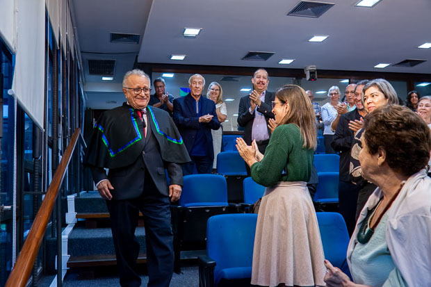 A reitora Rozana Naves destacou a importância da trajetória do emérito para a instituição e para a educação pública brasileira. “Eventos dessa natureza emocionam, porque são o reconhecimento solene da contribuição dos nossos colegas a essa Universidade. É um dia grande, grande na sua plenitude, grande no merecimento, grande no reconhecimento que a Universidade de Brasília faz à sua trajetória”, afirmou.