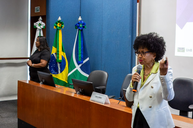 A secretária de Direitos Humanos, Cláudia Renault, ressaltou a importância de pensar a inclusão em sua totalidade e de fortalecer redes de apoio às mulheres na Universidade. “A Universidade de Brasília é, sim, um espaço para discutir a violência contra a mulher. Precisamos ver o outro em sua totalidade e compreender que ninguém caminha sozinho. Formar redes de proteção é fundamental para que possamos respeitar, acolher e garantir a permanência de todas as mulheres em nossa comunidade acadêmica.”