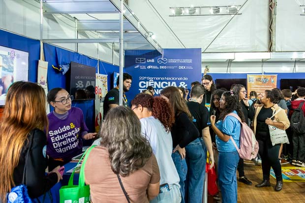Durante a Semana Nacional de Ciência e Tecnologia, a Universidade de Brasília recebeu estudantes de diferentes escolas do Distrito Federal, que tiveram a oportunidade de conhecer projetos de pesquisa e inovação de perto. Entre eles estava Maria Clara Pereira, do sétimo ano do CEF 06 de Brasília, que visitou o estande da Universidade acompanhada de colegas da escola. “Tem filtro de microplástico, adubos diferentes e experimentos que mostram como a água muda de cor e gera energia”, disse, ao enumerar os projetos preferidos.